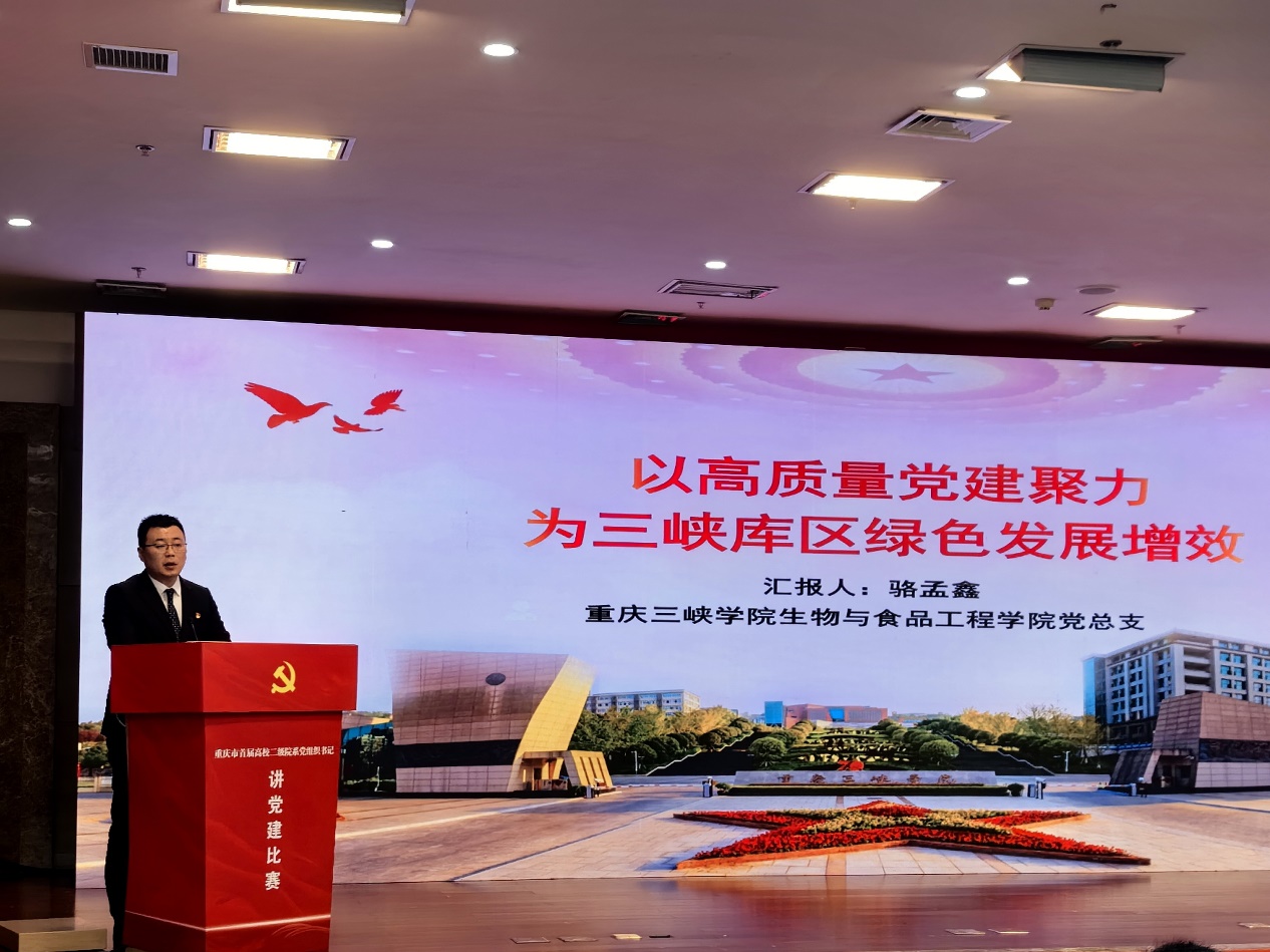 11月27日—28日,由市委教育工委主办的重庆市首届高校二级院系党组织书记讲党建比赛在重庆师范大学举行,共有70所高校的二级院系党组织书记参赛。我校生物与食品工程学院党总支书记骆孟鑫同志代表学校参加比赛,并荣获一等奖。