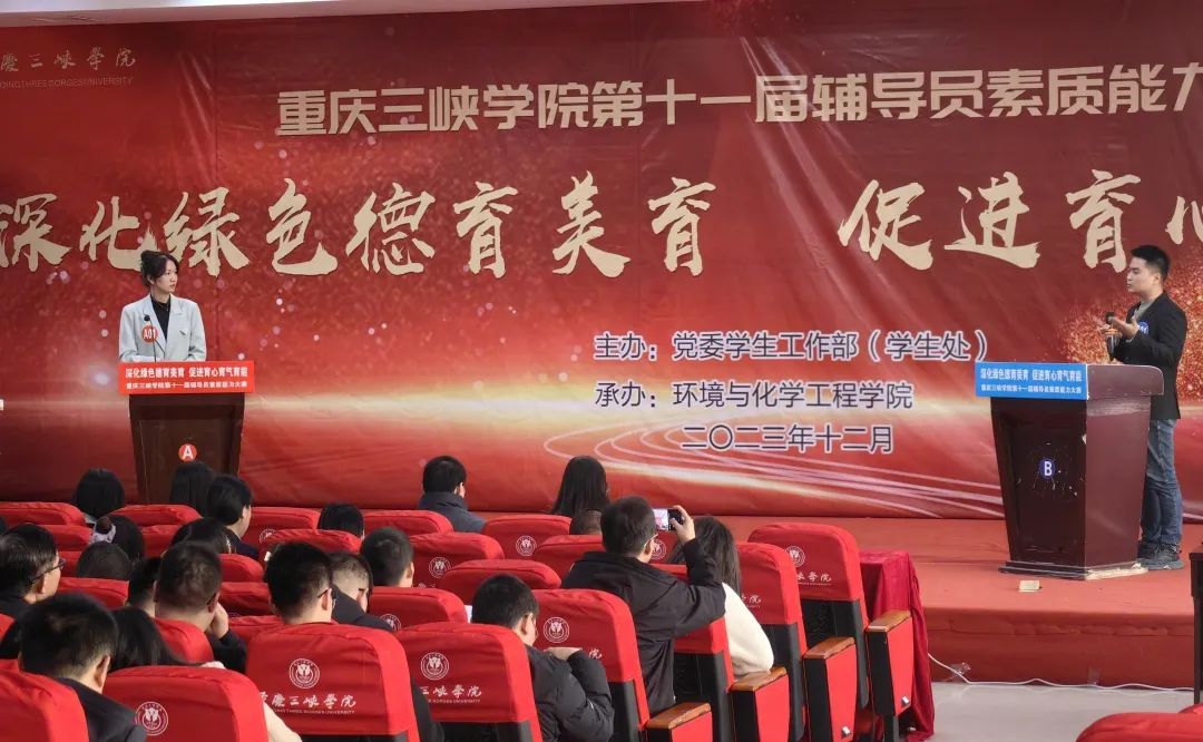 12月6日下午,学校第十一届辅导员素质能力大赛决赛在明辨楼2栋104报告厅举行,党政办副主任罗仁贵、组织部副部长黄琰、人事处副处长郭兰、教务处副处长秦刚和重庆市辅导员素质能力大赛高职高专组特等奖获得者张艳应邀担任评委,学校党委书记李廷勇出席并讲话。