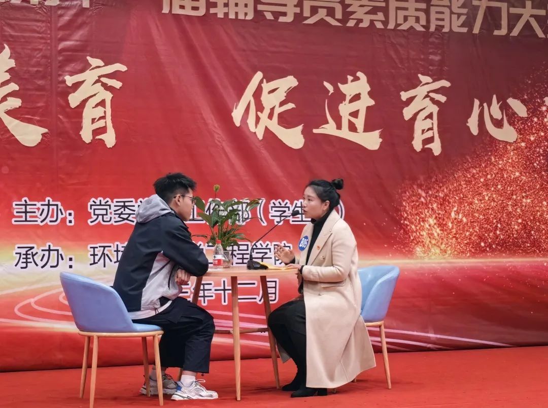 本次比赛由学生处主办、环境与化学工程学院承办,以“深化绿色德育美育,促进育心育气育能”为主题,历时一个多月,分为笔试、案例分析和谈心谈话三个环节,主要考查辅导员政策理论水平、专业素养和工作能力。总体来看,比赛过程展现了我校辅导员昂扬向上的精神风貌和扎实过硬的业务能力,达到了“以赛代练、以赛代训”的效果。
