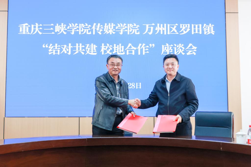3月28日,我校传媒学院与罗田镇结对共建校地合作实践基地、专业思政实践基地、实习实训就业基地协议签订及授牌仪式在万州区罗田镇政府会议室举行。罗田镇党委书记邵太清,学校党委委员、传媒学院院长韩红宇,传媒学院党总支书记孙国英,罗田镇党委副书记熊军、副镇长向明,传媒学院副院长陈振华出席挂牌仪式,传媒学院广播电视系教师及学生代表三十余人参会。