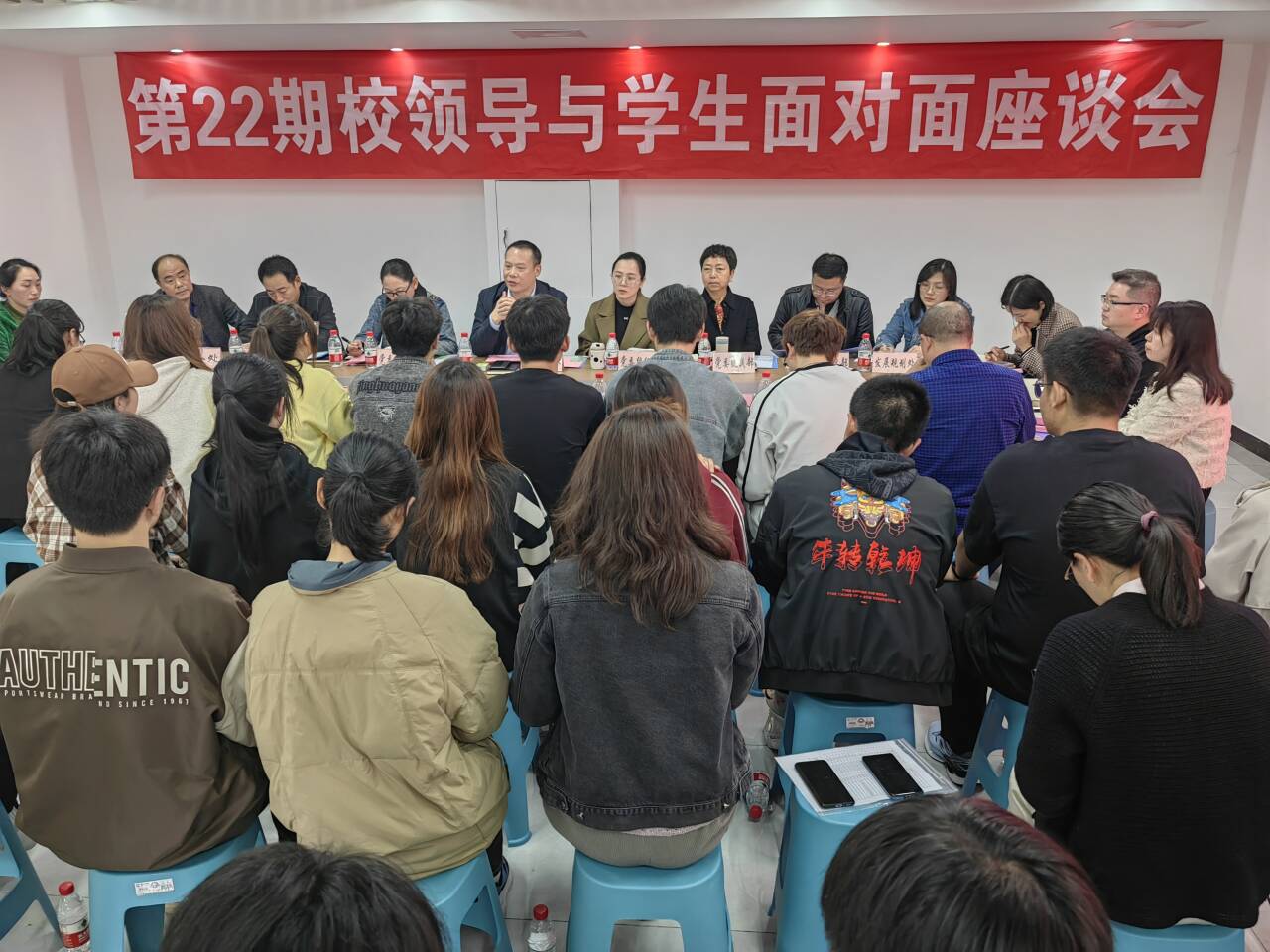 4月11日,学校在蓝雾苑“一站式”学生社区综合服务大厅召开第22期校领导与学生代表面对面座谈会,副校长臧小林出席会议,相关职能部门负责人和各学院学生代表40余人参加活动。