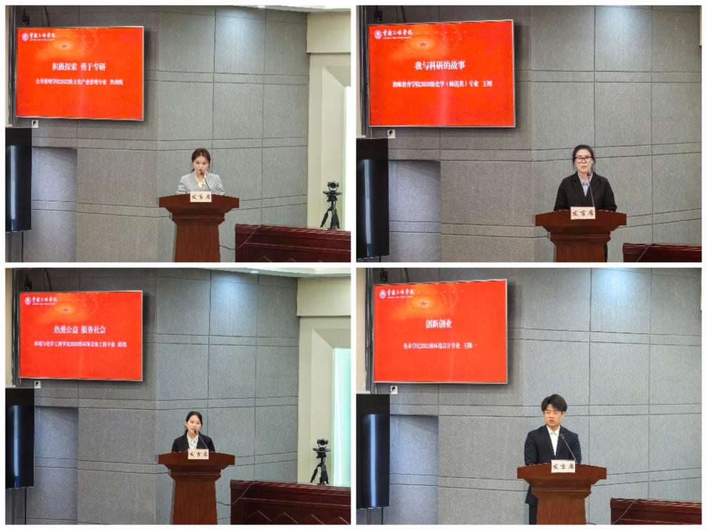 接着,来自公共管理学院2022级文化产业管理专业鲁润琪、教师教育学院2020级化学(师范)专业王堙、机械工程学院2021级汽车工程服务专业黄利东、传媒学院2021级广播电视学专业2班许璟仪、美术学院2021级环境设计专业王陈一、环境与化学工程学院2020级环保设备工程专业陈悦等六位“十佳校园之星”获奖代表,走上发言席做先进事迹报告,分享了他们在专业学习、社会实践、科技创新、志愿服务、自立自强等方面的青春故事,展现了三峡学子向上向善,勇于攀登的良好精神风貌。