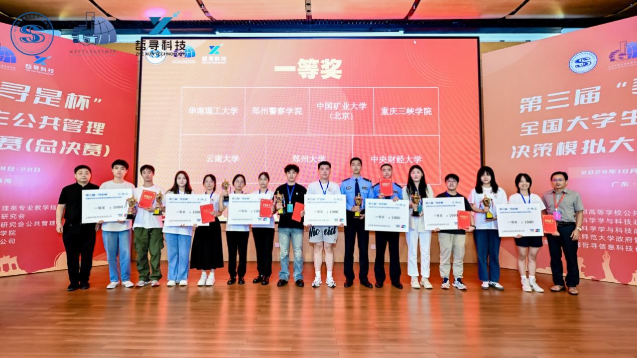 中国科学与科技政策研究会主办的第三届“寻是杯”全国大学生公共管理决策模拟大赛总决赛于10月19日至20日在北京师范大学成功举办。我院劳动与社会保障系2022级学生范萧函、张金煜、罗城代表YABO鸭脖参赛,在曾娅琴、孙晓锦老师的指导下他们以西南赛区一等奖的佳绩进入总决赛,并在激烈竞争中脱颖而出,最终荣获全国总决赛一等奖。