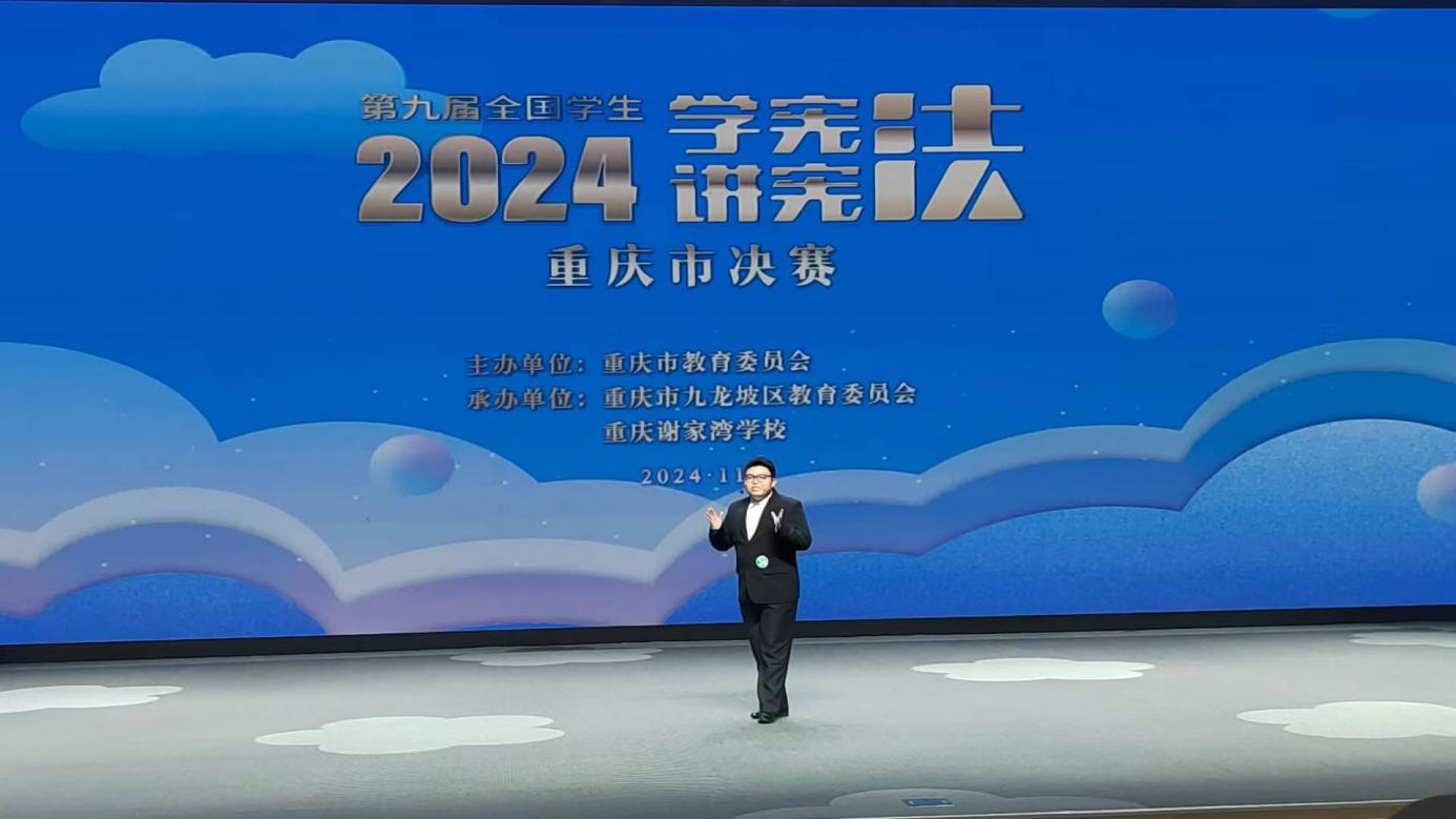 11月9日至10日,第九届全国学生“学宪法讲宪法”活动重庆市决赛在谢家湾学校举行,我校马克思主义学院2022级思想政治教育(师范)专业学生张杜江获得演讲比赛一等奖。
