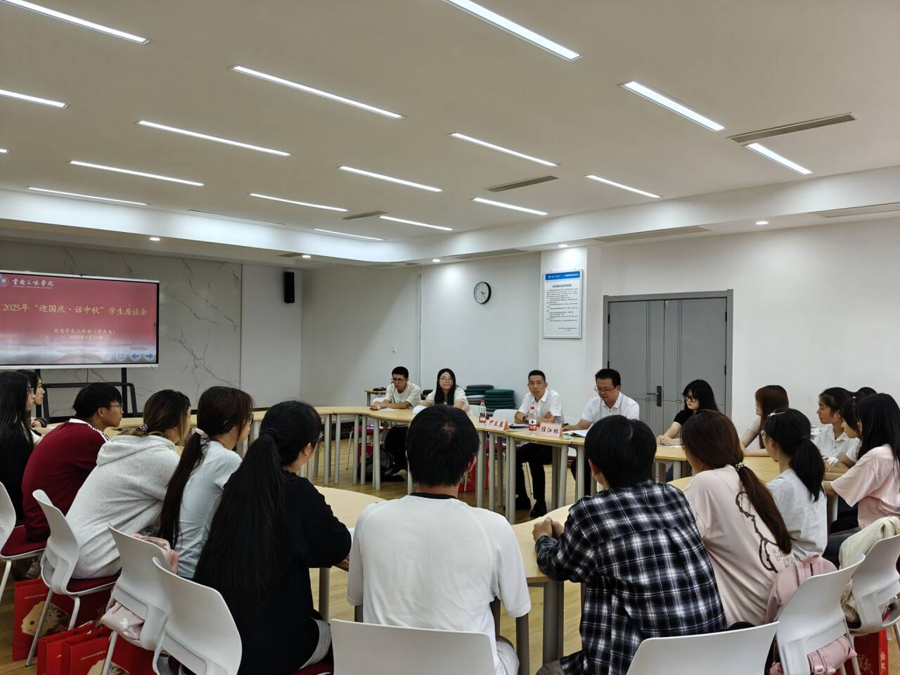 9月29日,学校在百安校区众创空间113会议室召开“迎国庆·话中秋”学生座谈会,党委常委、副校长尹立孟出席,学生处负责人及相关职工、学生代表30余人参加。