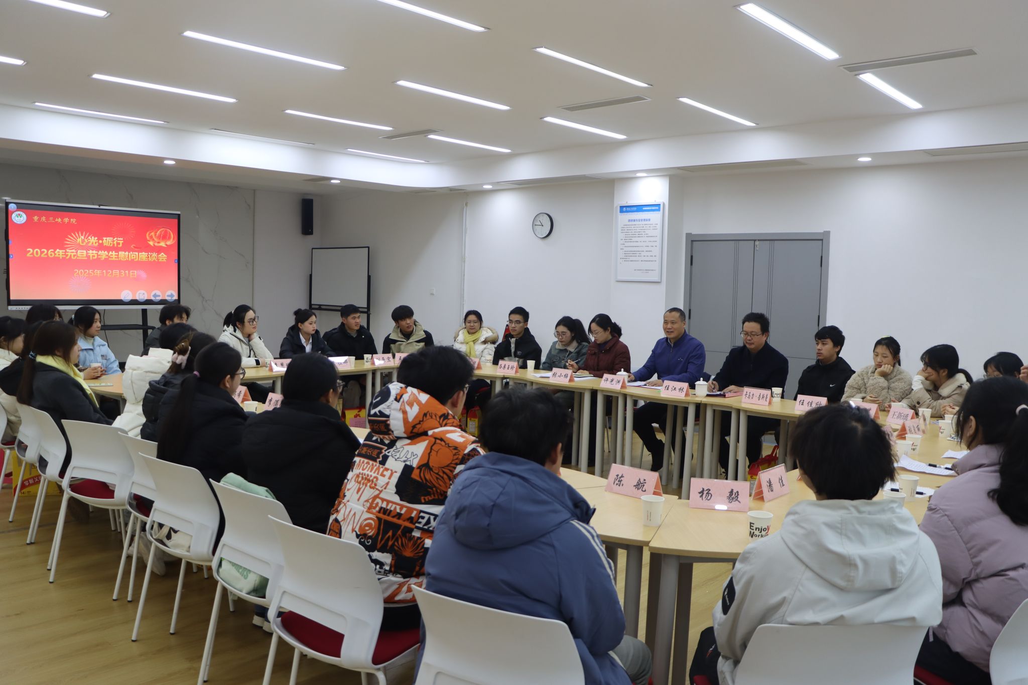 12月31日下午,学校在众创空间113举行“心光·砺行”2026年元旦节学生慰问座谈会。学校党委书记许光洪出席活动并讲话。